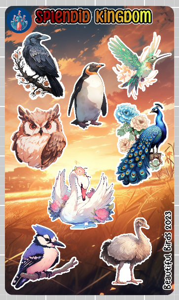 Our newest sticker set, “Beautiful Birds,” is ready to take flight! This collection features eight stunning species of birds, each captured in a soft and enchanting style. From the iridescent hues of the hummingbird to the majestic grace of the swan, every sticker tells a tale of nature’s beauty. Stay tuned for the grand release of these exquisite stickers, perfect for adding a touch of avian elegance to your life.
